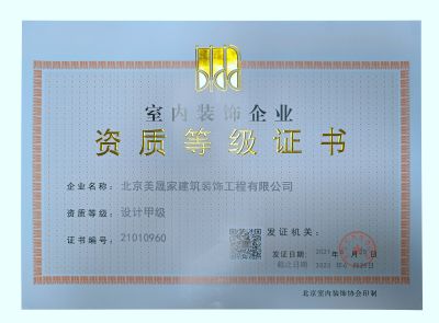 美晟家具有室內裝飾施工壹級、設計甲級資質,是港股上市互聯(lián)網(wǎng)家裝品牌—齊家網(wǎng)戰(zhàn)略合作商戶,城市星級商家,綜合排名位列齊家網(wǎng)北京站榜首;是中國室內設計協(xié)會會員單位,北京市工商聯(lián)裝飾商會會員單位,北京市綠色裝飾專業(yè)委員會會員單位,北京綠色裝飾企業(yè)。