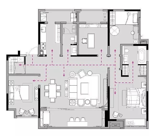 紛繁復雜的現代生活,當我們習慣了步履匆匆的快節奏,然而生命的流逝真當如此?設計師用刪繁就簡,回歸本真的手法,營造溫暖含蓄的中式居家空間,讓時間的腳步慢下來,生活不只是忙碌。