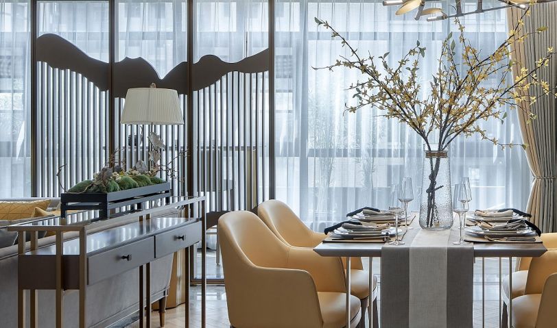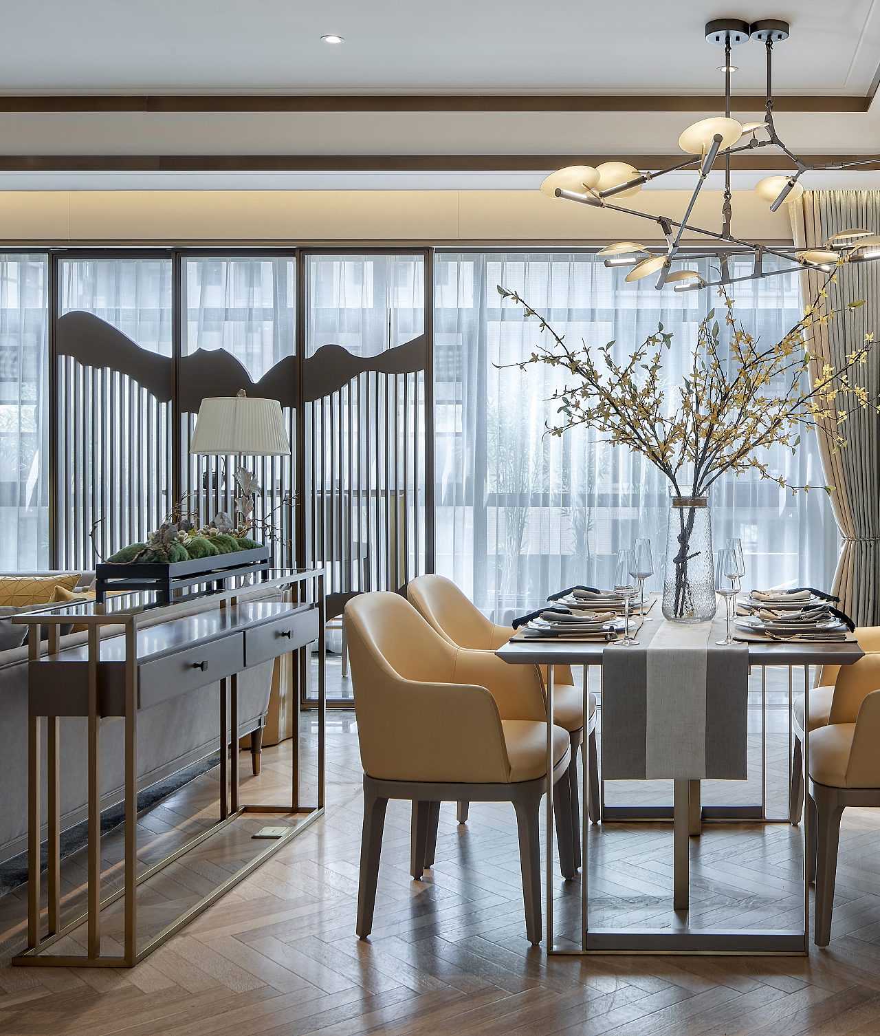 客餐廳相連,自然光從通透玻璃窗鋪灑進來,為居室附上一層溫馨恬靜的光景。