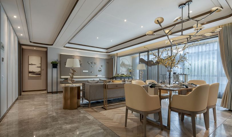 相互聯系的客餐廳,精致的餐具與裝飾品,極富東方韻味的家具,相映成趣。