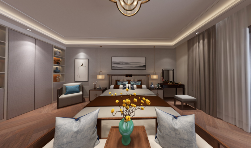 一家四口居住,客戶喜歡新中方風格,要求不沉悶,有書香氣息。