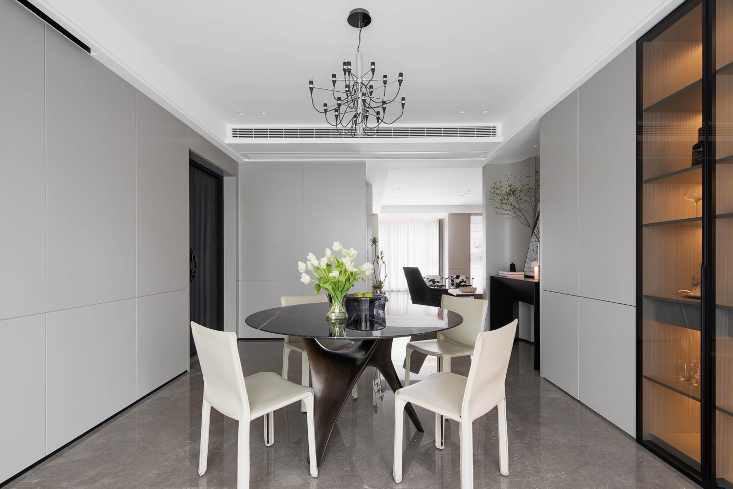 回家首當其沖的儀式感的意義在于身,更達于心。一抹橙色在造型幾案之上久候歸家之人,幾枝綠意從視覺上卸去歸家后的所有累贅與疲憊。由此入戶,從心開始,串聯起無數個生活場景的展開。