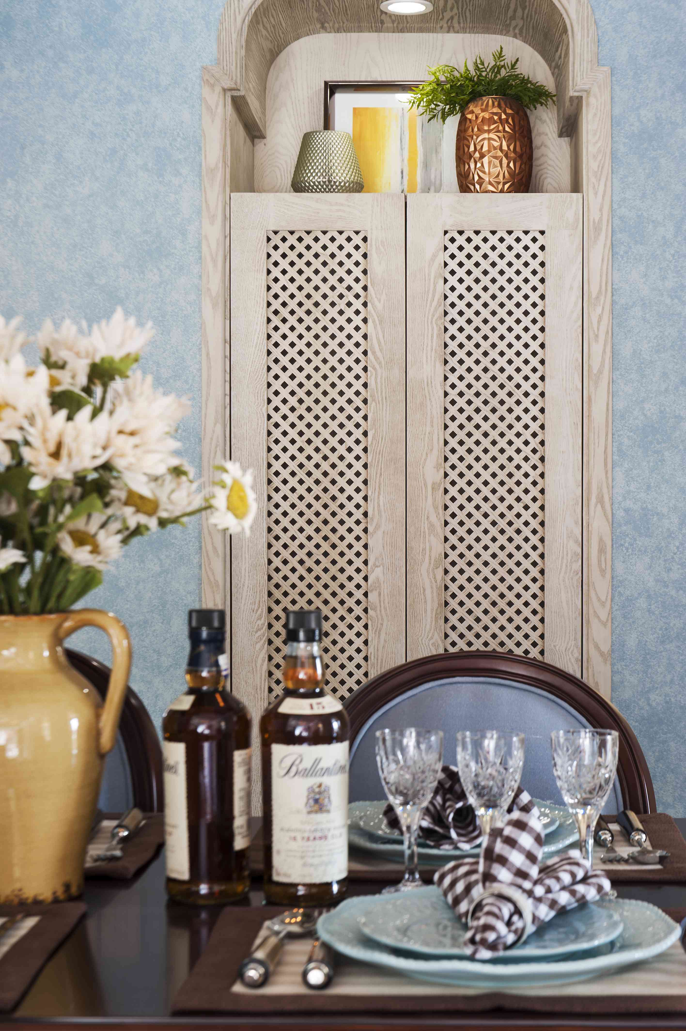 我們在空間設計上采用了連續的拱門和馬蹄門窗來體現空間的通透,并在墻面處采用半穿鑿塑造室內的景中窗。一個原汁原味的地道設計還需要處理無處不在的細節,黃銅制的面包托盤、陶器、銅鍋,古老的木制和銀制餐具。