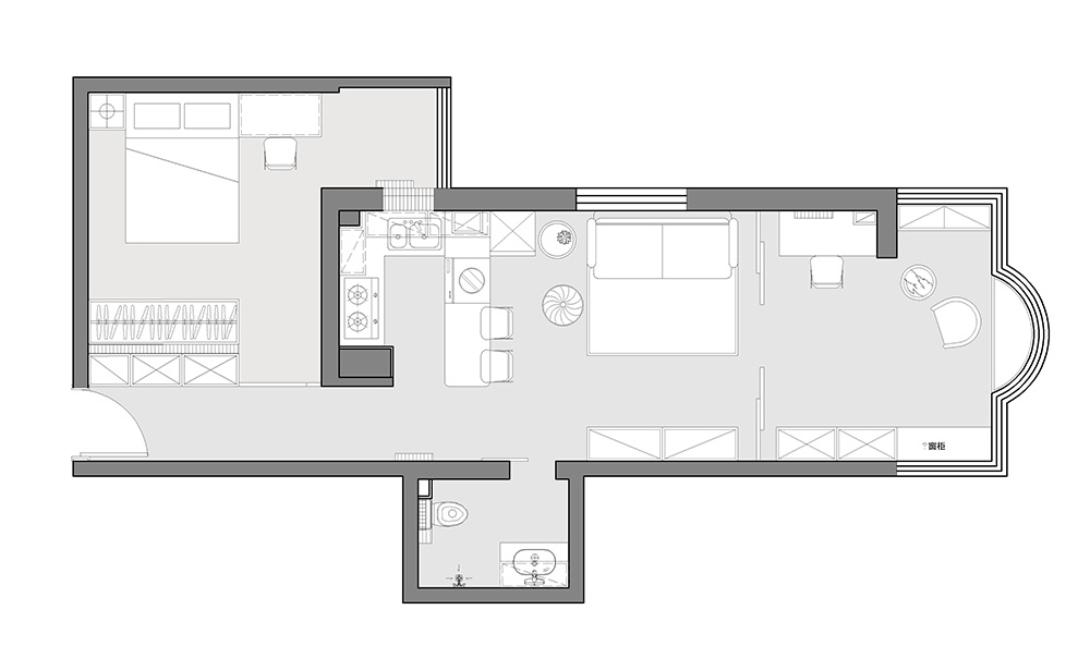 2.希望在原有一居室的情況下,能有第二個可活動的居住空間方便后期待客使用。