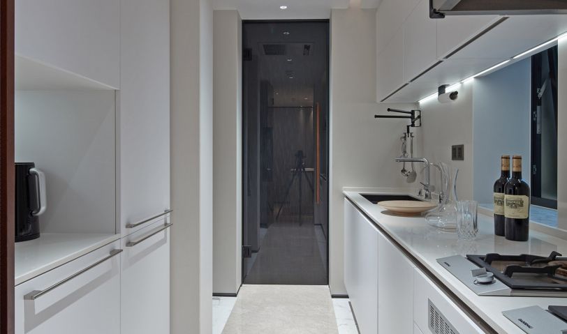 廚房和中島臺有一個連接,動線流暢,這樣不僅做起飯備菜來是很便利,而且讓大家有了更多交流的空間。慢慢烹飪的過程,是等待美好的過程。生活是柴米油鹽醬醋茶,但也是滿懷期待的人間美味。為愛品嘗,心懷溫暖。