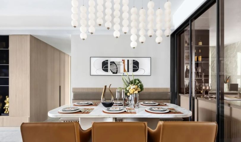 家是港灣,也是理想空間。通過細致的金屬線條紋理,淺色木以及皮革,配合精致的細節收口,使整體視覺更富開闊感。