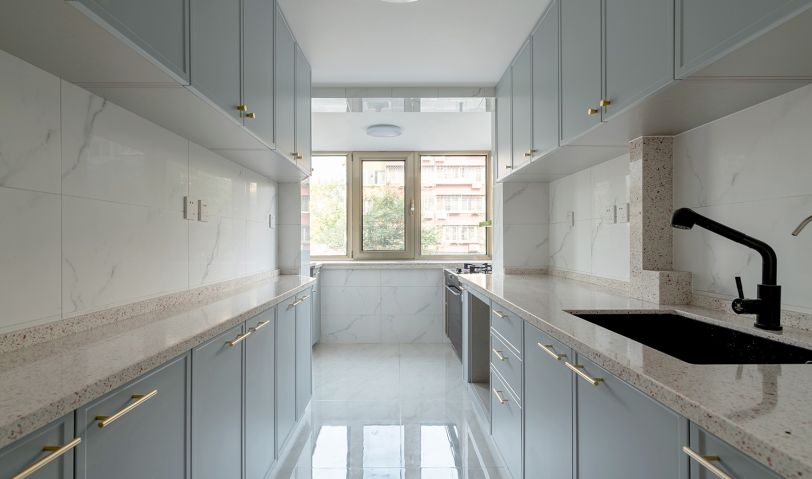 廚房增加了儲物空間,利用陽臺的空間,把灶臺和洗衣機都放了進來。窗戶做了外飄窗,擴大了炒菜區域的操作范圍。