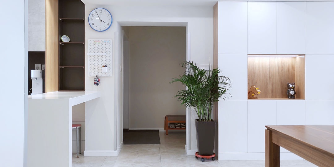 從玄關看向室內 玄關進門右手邊留有吧臺,進門后可以隨手臨時放置物品。