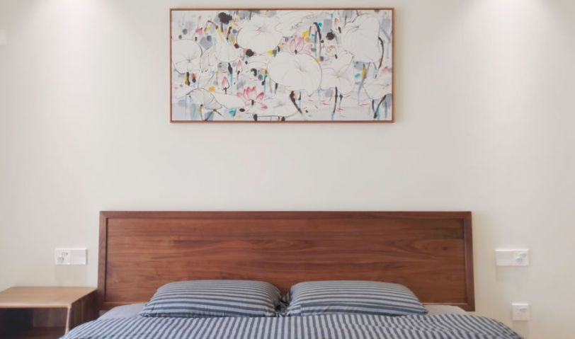 1.8m的胡桃木實木床。質感滿滿。其實家里真的不需要做那么多背景墻,節省下來的預算買好的家具,氣質滿滿。這個案子很多家具都是胡桃木的,在現場看真的很細膩的質感,照片沒辦法表現出來。