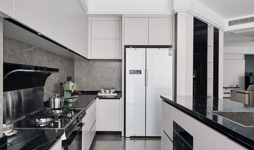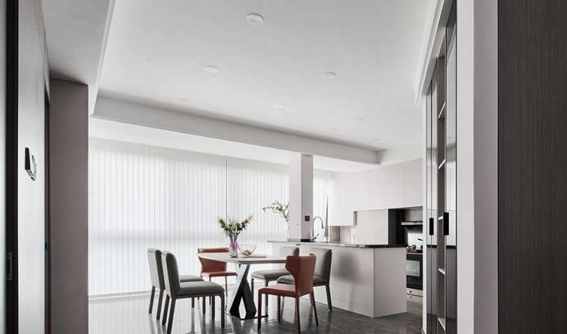 廚房以開放的狀態呈現,利落的線條勾勒出外形,豐富的料理功能填充。在這里,我們可以用一日三餐的煙火生活來治愈工作帶來的疲乏。