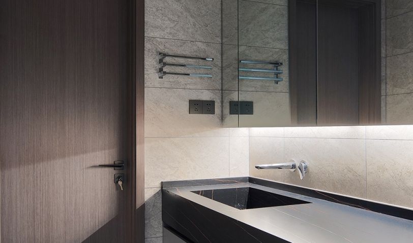 衛生間是白與灰的主場,清冷的色彩與布局帶來秩序感,簡潔的設計讓居住者在洗浴室中有更好的體驗。