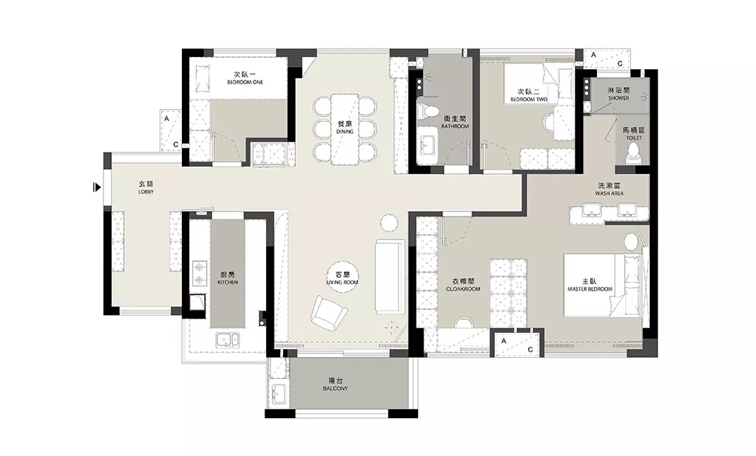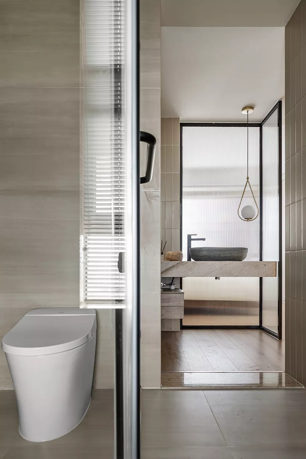 同色系的大理石與長條小瓷磚融合,讓衛生間干凈通透中不乏簡潔優雅。兩心相憶似流波,潺湲日夜無窮已。