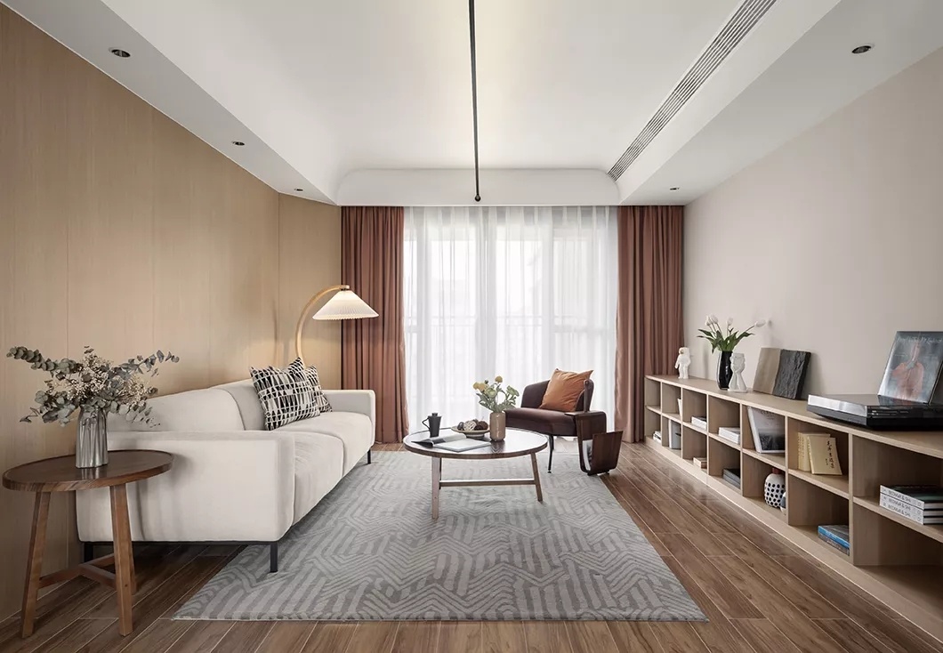 婚房整體采用大地色系,融合原木元素,營造輕盈溫馨氛圍。翻閱、交流、聆聽、樂享……悠然自得,盡在家中。
