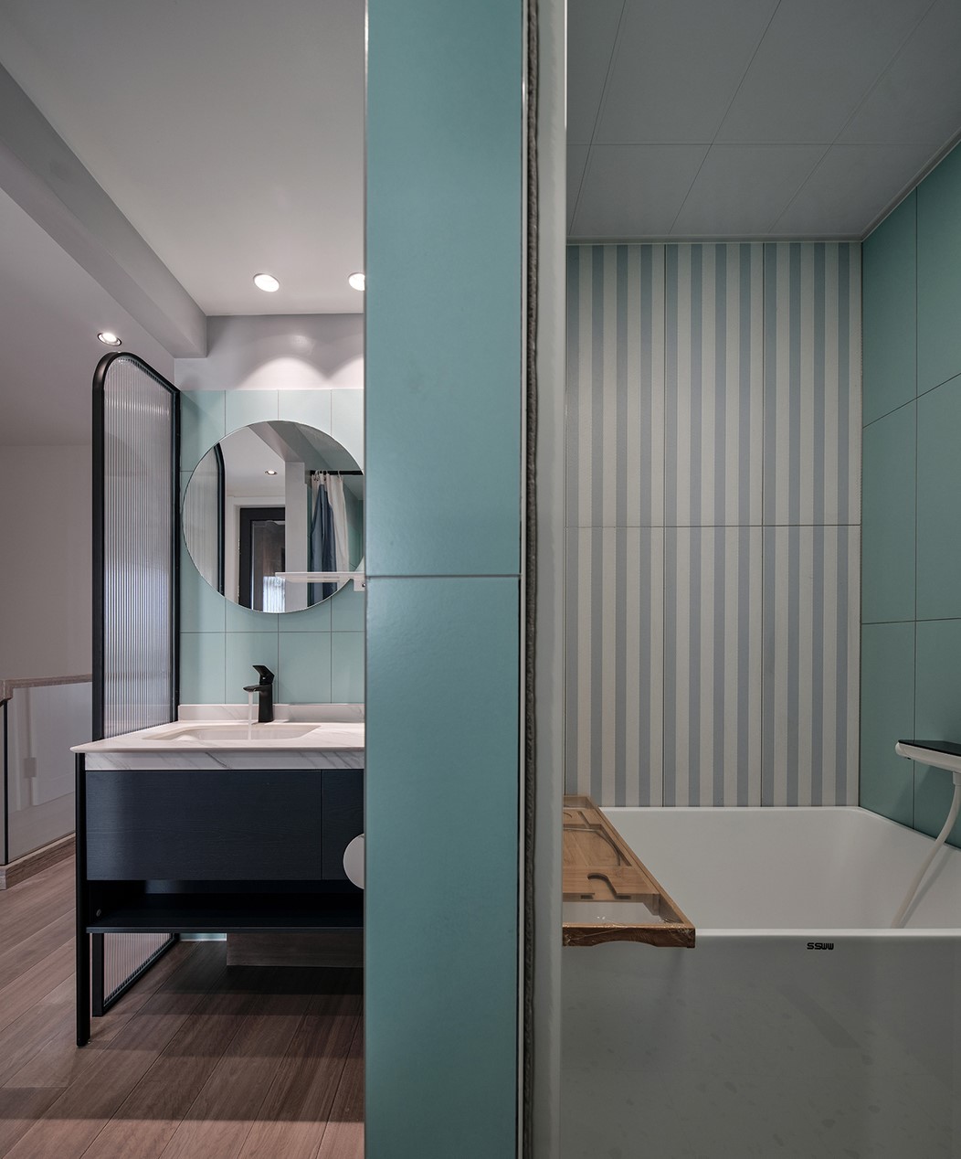 玻璃磚保證私密性的同時又形成了隔而不斷的空間效果,增加了空間的通透性。