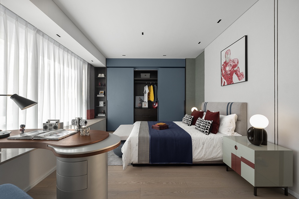 開放式黑色衣帽間有一種不容忽視的雅奢。柔美色調家私釋放出融融暖意,賦予日常起居以鮮明活力。