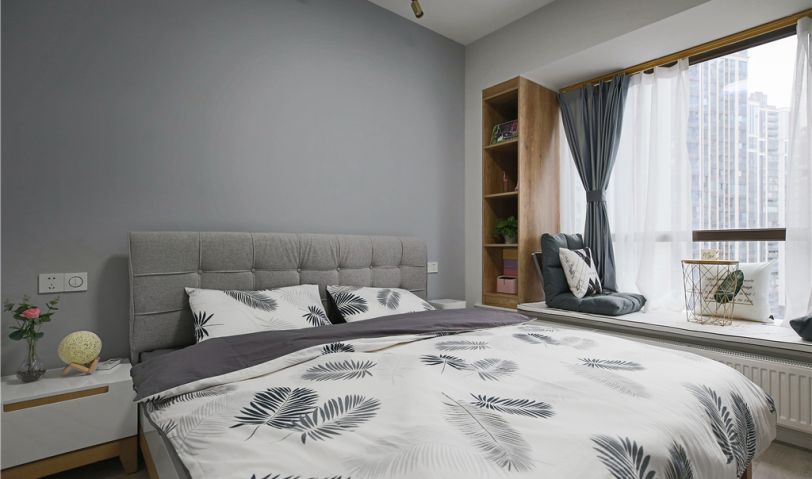 網癮少女琪琪,深受某音的影響,還是免不了對黑白灰工業風的向往,主臥的色彩和軟飾的搭配終于向高冷范兒妥協了,入目清泠,猶如一幅鋪開的水墨畫卷。