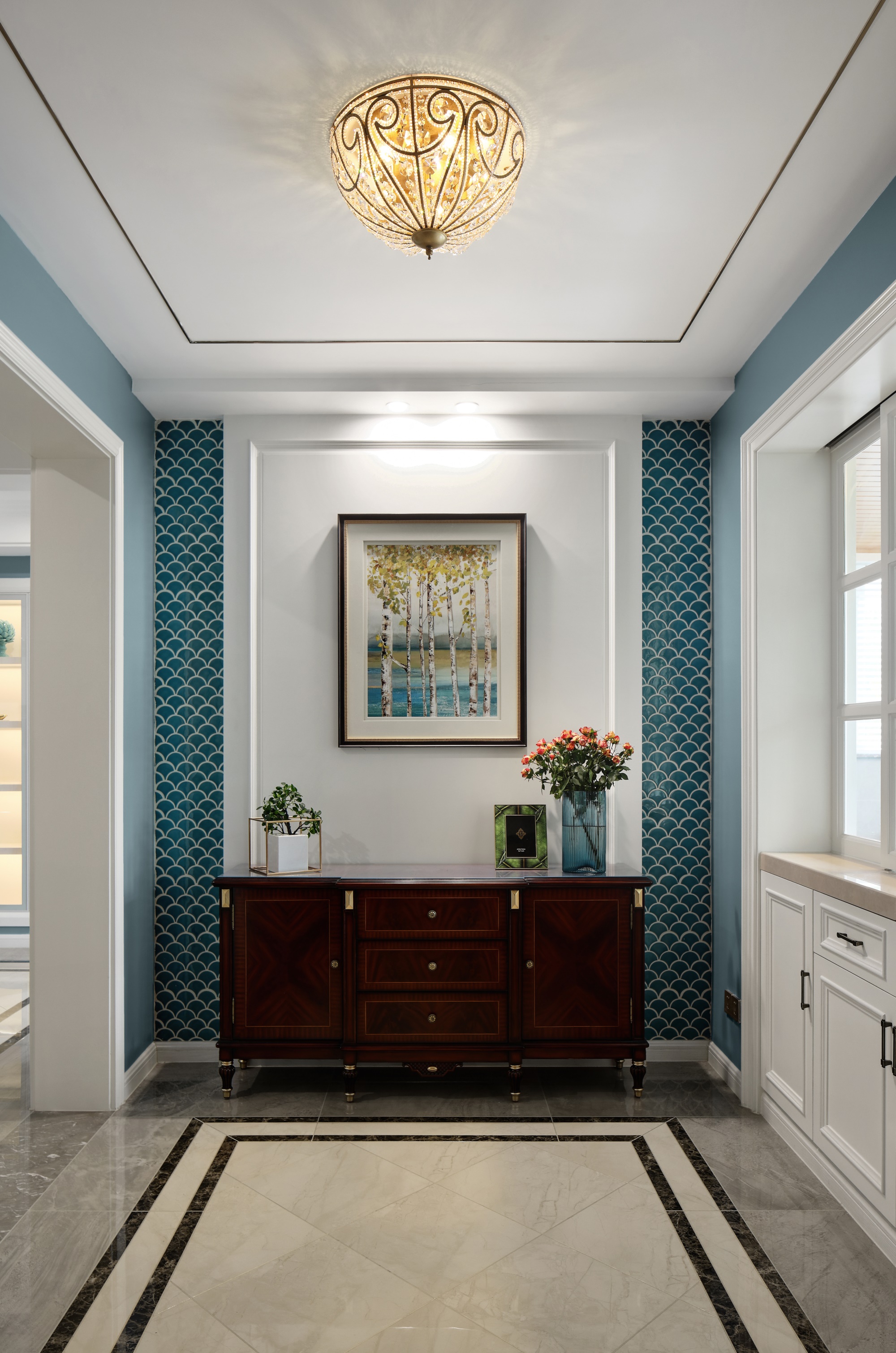 大膽的運用魚鱗片狀的瓷磚,刻畫設計細節,以藝術的造詣重新定位結構。不矯揉造作,保持原汁原味的空間觸感。弱化玄關柜的視覺,讓進門的感受更加屈從于對藝術的打量,使設計無聲無息的融合到生活中,在漫不經心中尋求理性。
