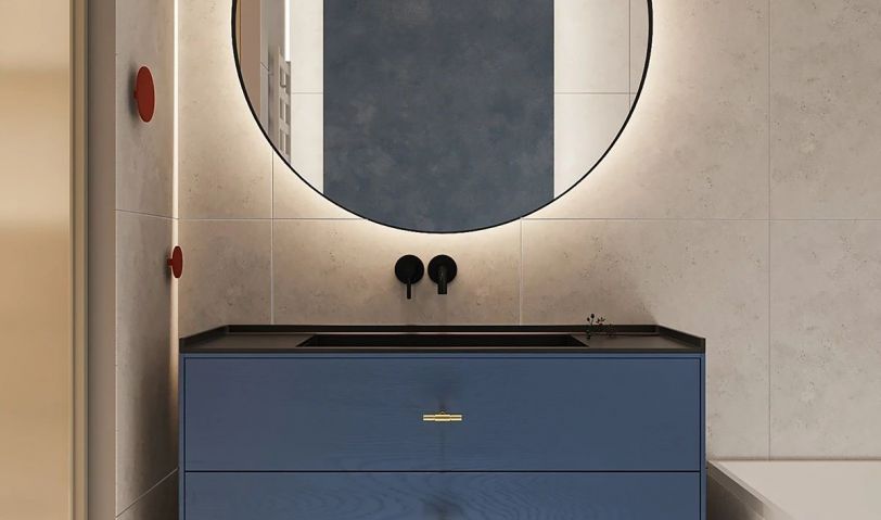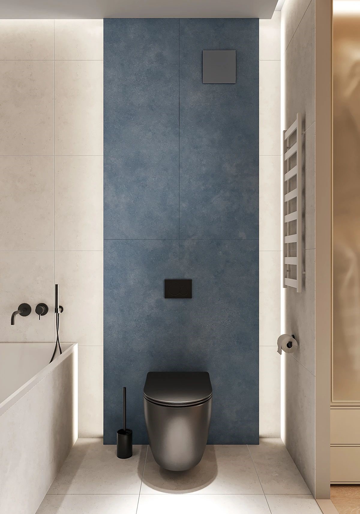 主臥衛(wèi)生間選擇了與開放區(qū)域相同的色調(diào)