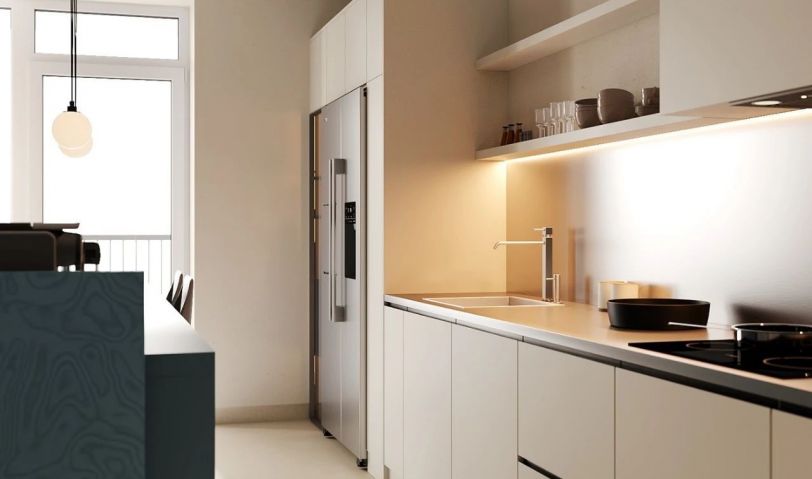 廚房的部分又回到了淺色系,顯得簡(jiǎn)約卻不缺乏設(shè)計(jì)感