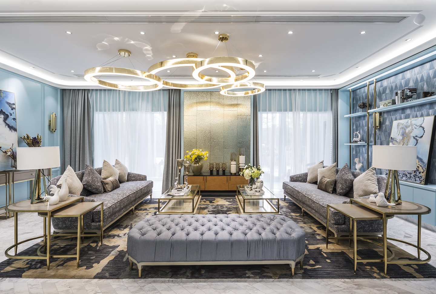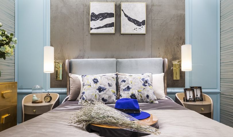 軟裝以色彩恣意穿梭空間,清淺的馬卡龍藍賦予空間以生命力,少了一般家居軟裝設計中的中性調與冷靜質感,卻多了一份法式的清新優雅,甚至還游弋著一絲溫馨甜膩的味道