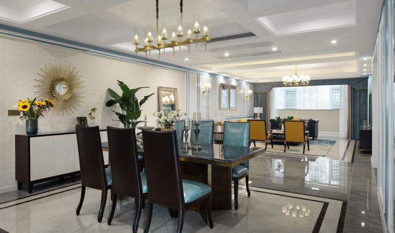 法式風格軟裝是浪漫優雅的必要條件,除卻傳統的繁重與冗余之后,在對稱的軸線排布、細膩而簡約的石膏線、灰色軟包的細節處,我們依然能夠尋覓到法式的精致考究,以一種更貼合現代審美的方式。