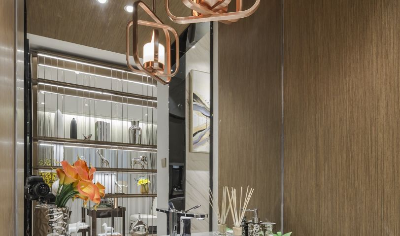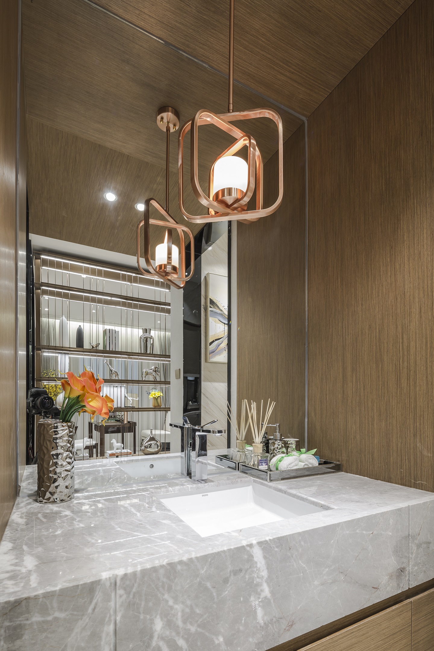現代風格的簡約利落基調,空間上選用低調的芝麻灰與深沉的古銅色為主色,用典雅而不過度的裝飾,勾勒出現代雅奢生活的精致質感。