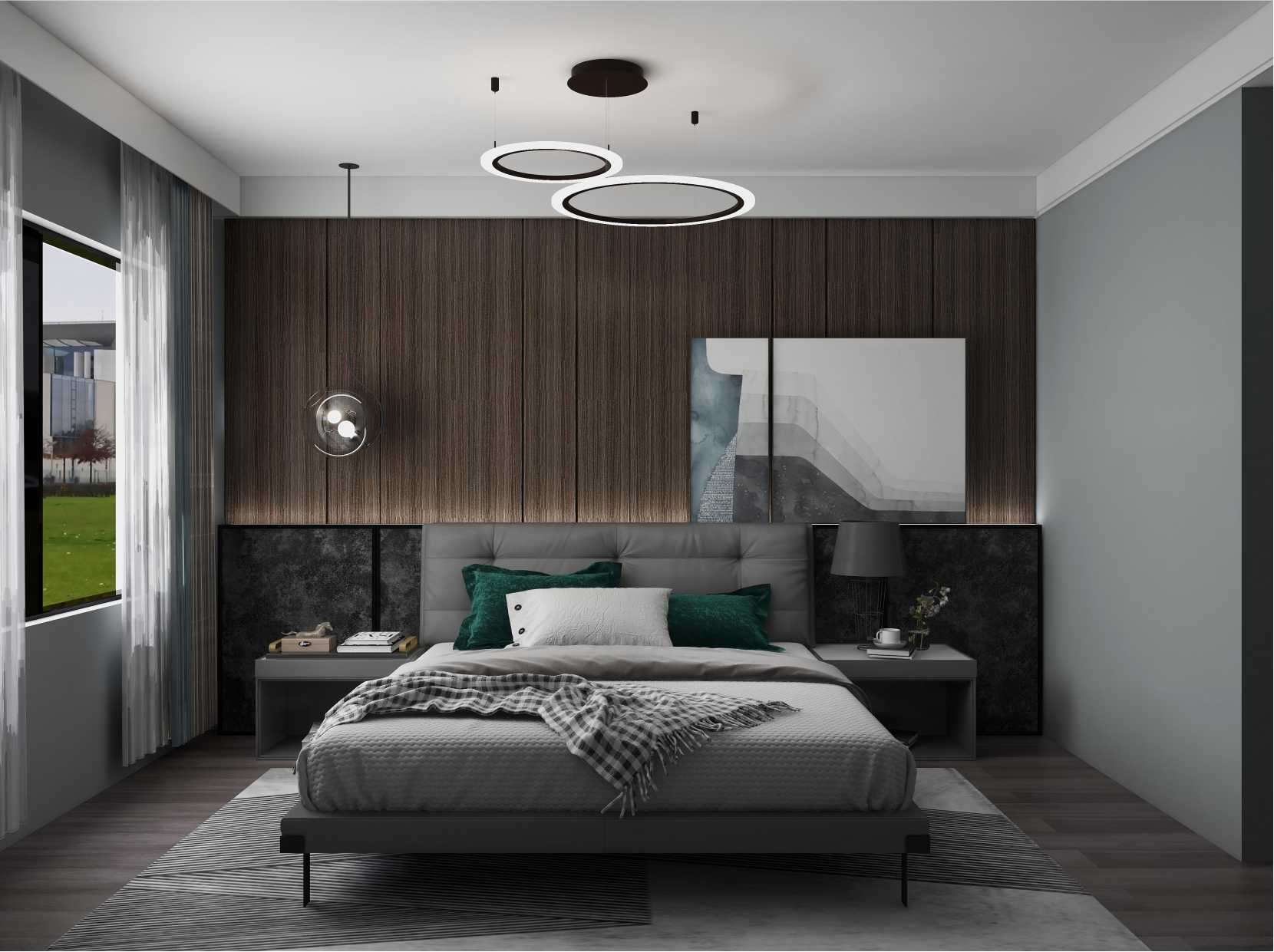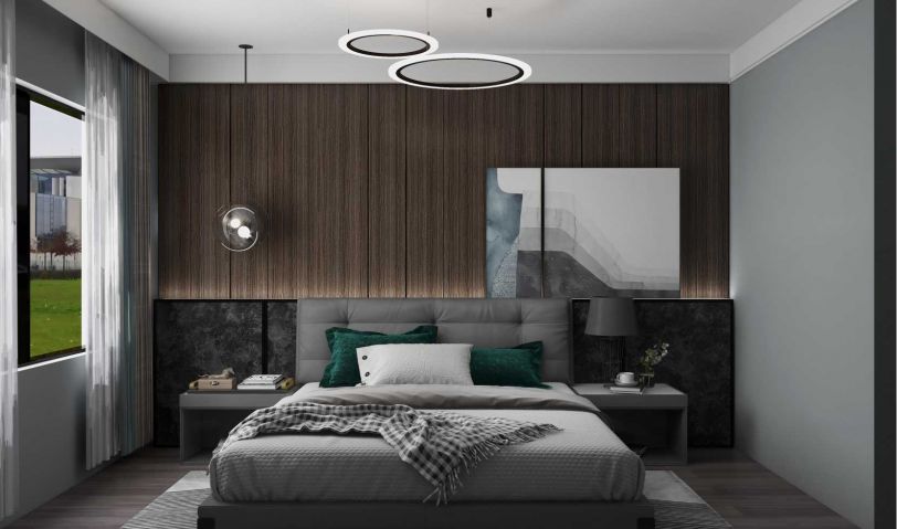 主臥室整體以深色系為主,簡約大氣,沒有做太多裝飾,背景墻以木質(zhì)為主,增加了空間的溫暖性。
