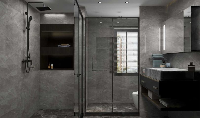 衛(wèi)生間整體以深色系為主