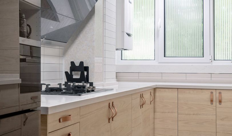 小白磚和木柜門搭配出來顏值是很高的,清新還顯得干凈。可能大家也都注意到了,每個空間的窗戶玻璃上都呈條紋。因為這個是一層,所以小區過往的人可能會隨時看到家里的樣貌,這種情況會讓私密性就比較差。因此屋主就自己在某寶購買了這個透明條紋貼紙,即便白天不用拉窗簾,也不會擔心采光。