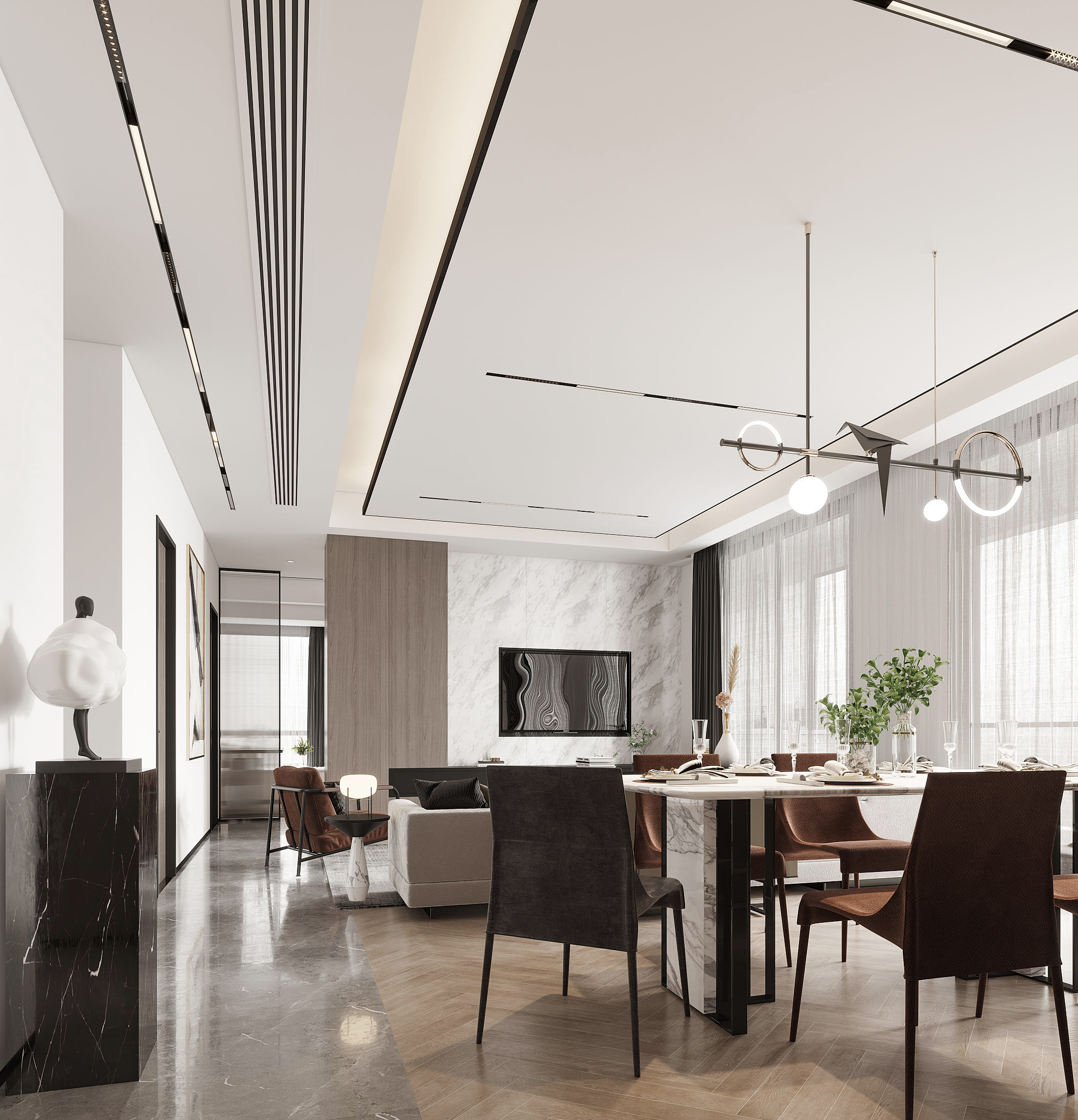 更注重家人交流和互動的空間,摒棄不必要元素的堆積和復(fù)雜的形式,回歸生活本真。餐廳背景墻用木色的溫潤為映襯,有趣的藝術(shù)品更是畫龍點(diǎn)睛,大氣、簡約而時尚。