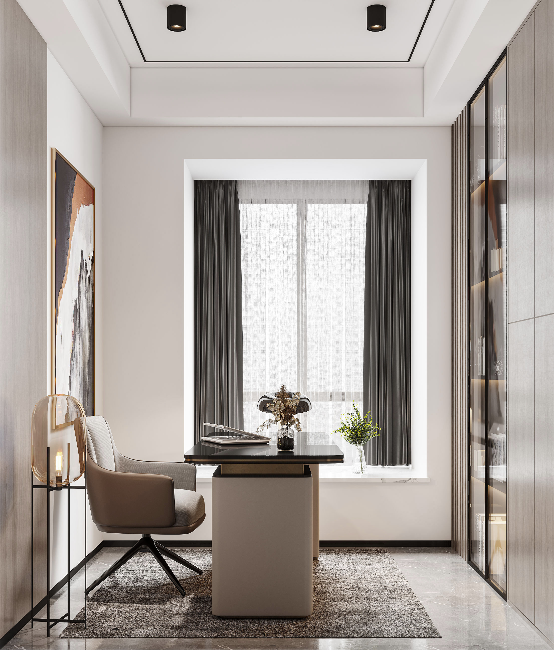 書房開敞通透的格局與過道連接,“方寸之間成天地,一籍文字知乾坤”,長虹玻璃隔斷劃分出兩個空間不同的功能需求,不失整體。