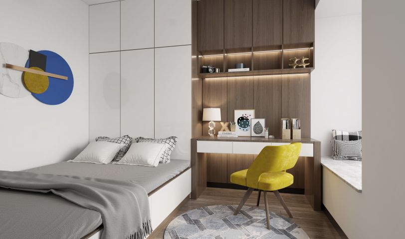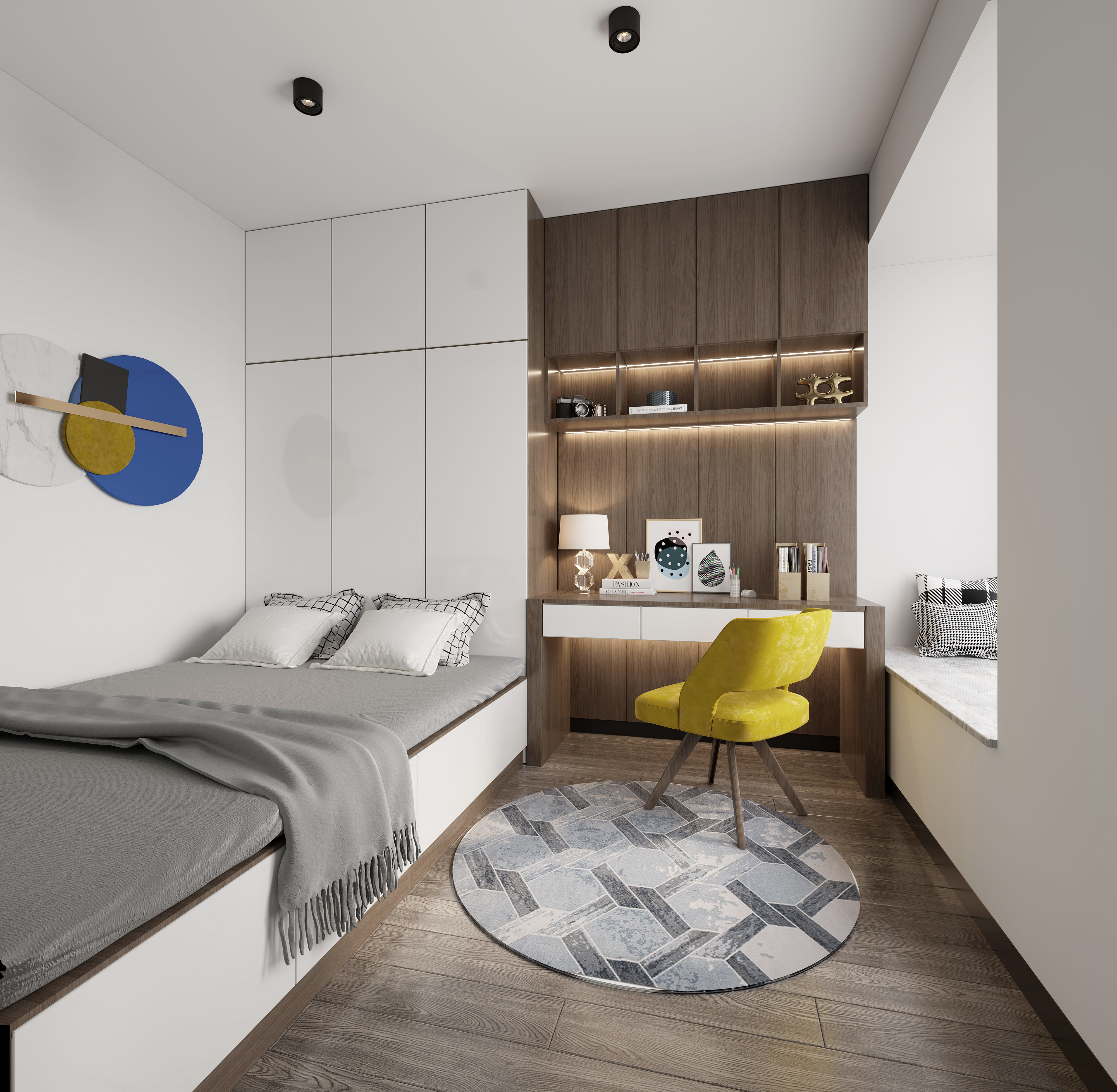女兒的房間更注重學(xué)習(xí)的功能性,盡量給孩子輕裝修重裝飾的空間,軟裝飾的亮色點(diǎn)綴增加了空間的趣味性