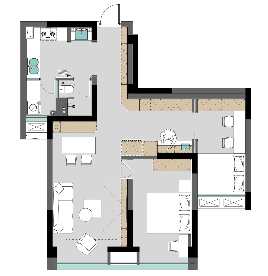 | 案例名稱(chēng) | 67m2空間巧改造,雙貓家庭幸福多 | 戶(hù)型 | 案例面積 | 0㎡ | |