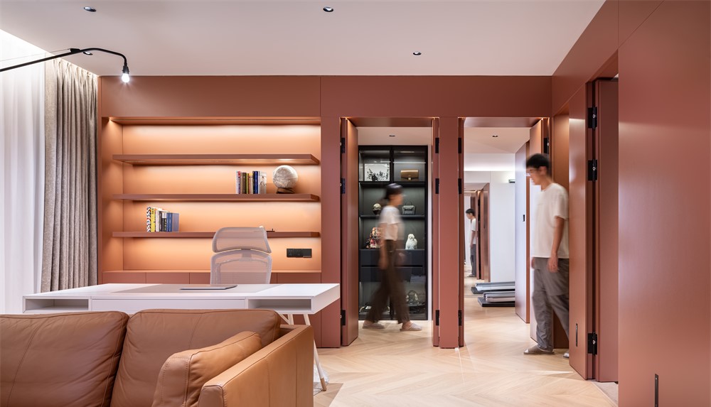 將原先封閉的書房與客廳打通,做成了開放式,讓空間更加寬敞、通透。