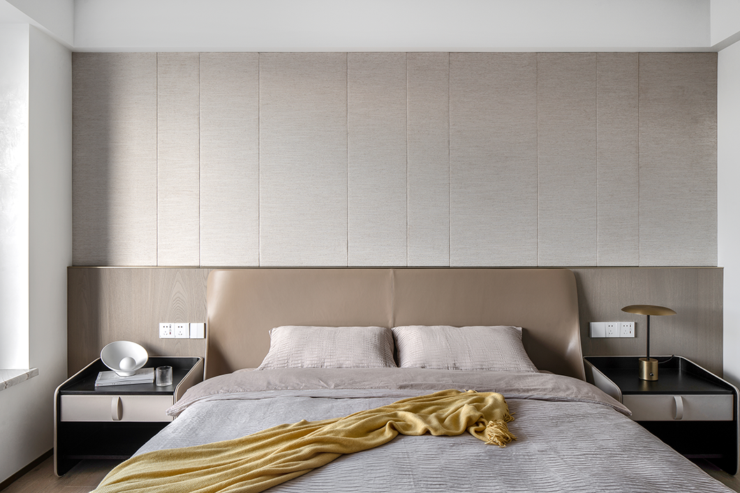 臥室用溫和而內斂的氣質勾勒安心入睡的場景,編織了一個舒緩充盈的場域,對美夢也充滿憧憬。