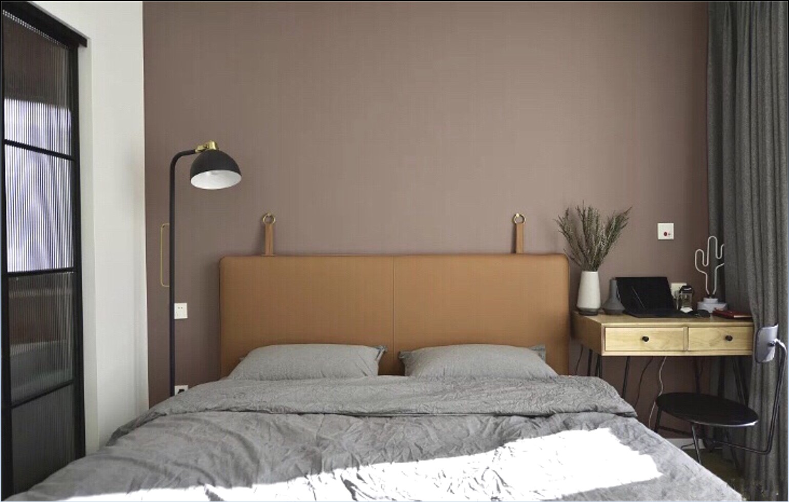 主臥背景墻以臟粉色為主,時尚且不失溫馨。以色彩和家具合理的擺放滿足使用要求,燈光的點綴把每件物品都照射得更宜溫馨特別,主臥隔斷墻采用長虹玻璃隔斷,這樣不僅解決了隱私問題,也把采光利用了最大化。