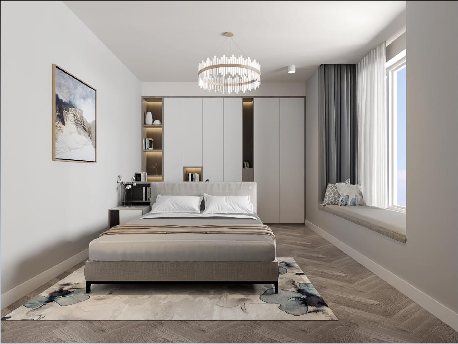 整個空間采用了大量的暖白與跳色不同程度的體現(xiàn)對比關系下,通過大面積的背景墻與現(xiàn)代線條體現(xiàn)高冷下的柔和,寧靜而好,簡約而時尚。