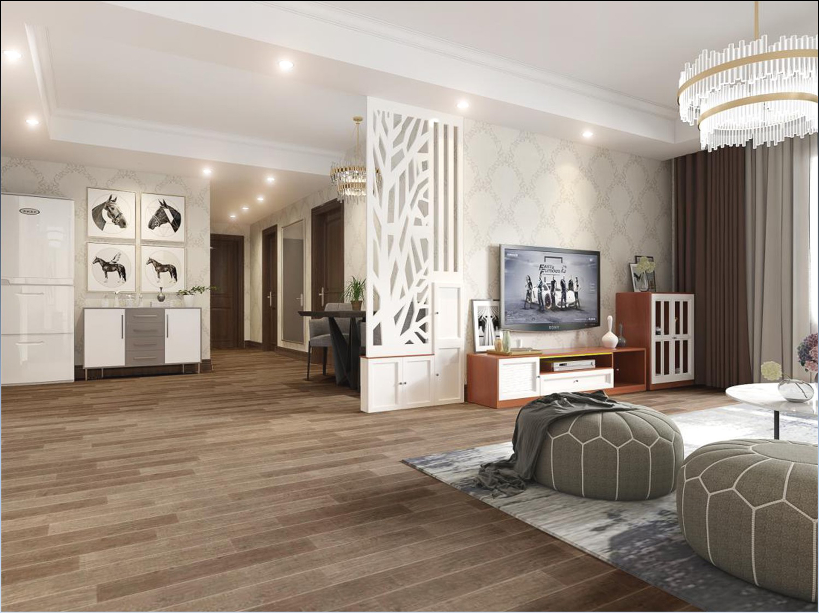 客廳的地板以胡桃木為主調(diào),展現(xiàn)一個休閑且質(zhì)感的氛圍,沙發(fā)背景墻處理相當(dāng)簡潔而富品味,裝飾畫提升空間的豐富度,展現(xiàn)出的是港式家居風(fēng)格。追求溫馨、平靜、安逸的暖白系貫穿主題。