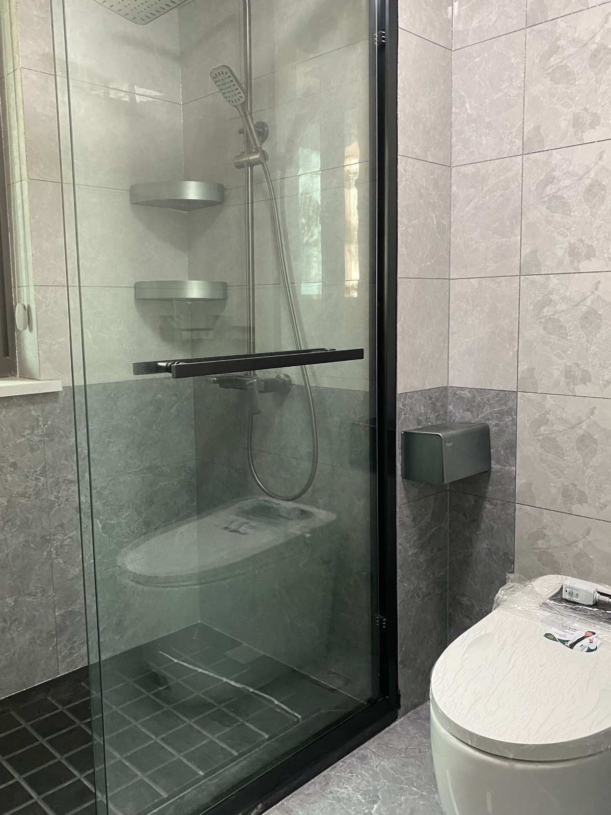 生間延續黑白簡約色調,深沉的氛圍感,干濕分離讓空間劃分逐更為清晰