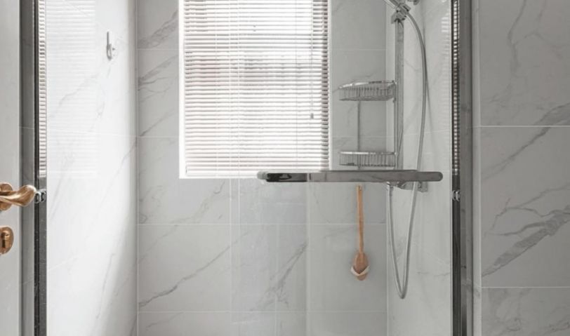 大膽地將追求自由的心表露無遺:墻面用大理石紋墻磚搭配一面粉色的條紋墻磚