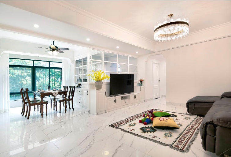 客廳采用暖色調(diào)墻漆,客廳墻面留白沒做過多裝飾