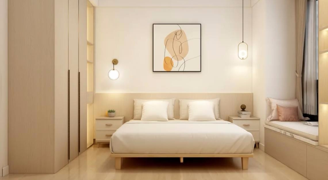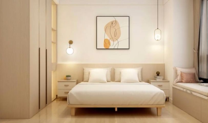 臥室采用暖色系,視覺上溫馨,簡潔大氣