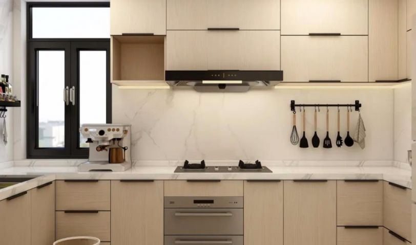 廚房上下櫥柜設計統一,整體簡潔,視覺上舒適