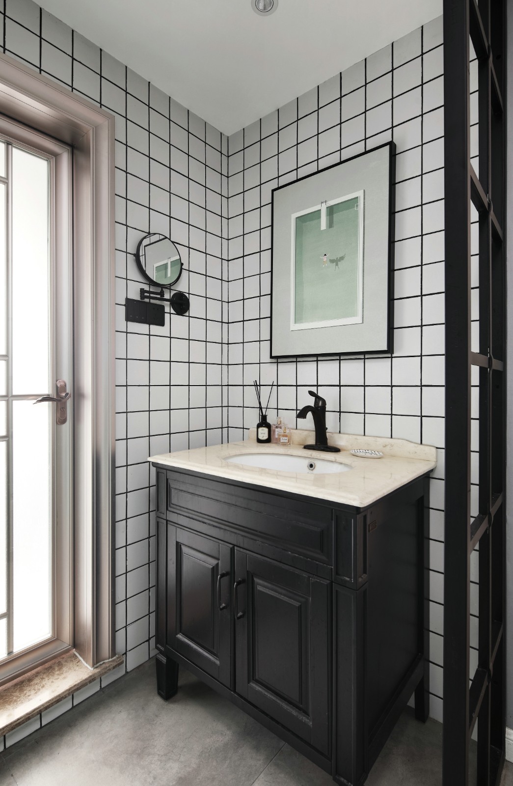 衛生間灰色與白色的運用,平衡了空間的設計溫度。