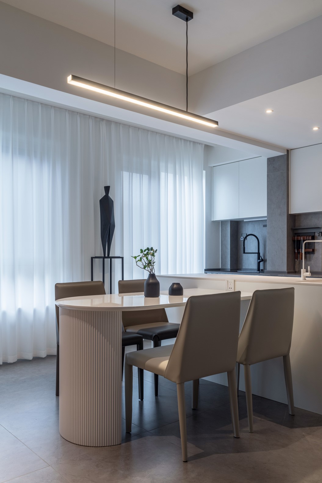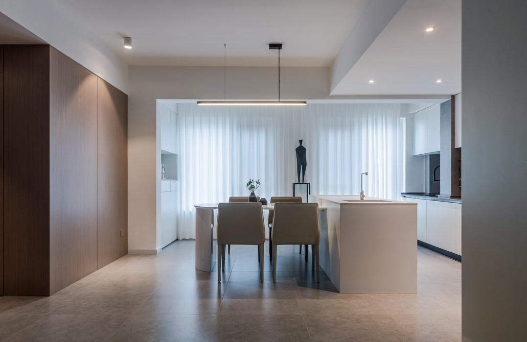 1將餐廚外的陽臺打通到室內,擴大餐廚的空間,實現了屋主想要的大廚房和中島,解決的餐廳這邊采光通風不佳的問題。2客廳的窗戶這面墻敲掉之后,外面的平臺可以利用起來,增加的客廳的面積,也增加了客廳的通風采光。