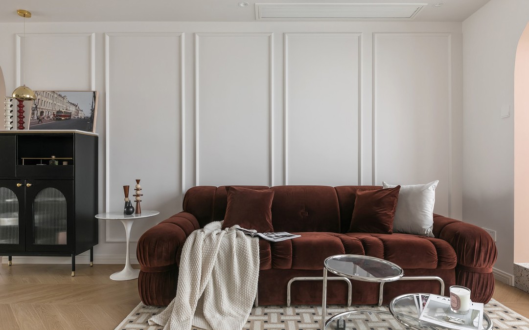 石膏線造型搭配酒紅色沙發,這是女主人的最愛