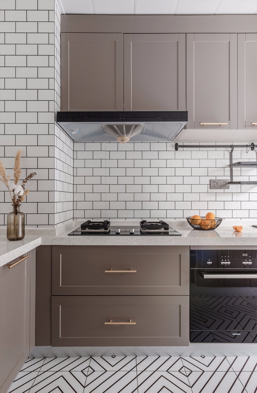 棕色的櫥柜白色的網(wǎng)紅磚,簡潔大方