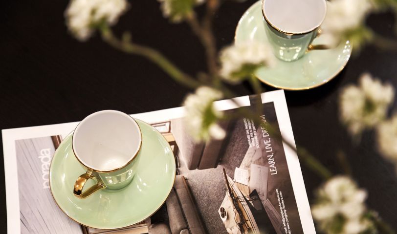 選用淺色系作為客廳的主色調,融合金屬達到輕奢感。整體配色給人清新明亮的感覺,少許深色運用不顯壓抑反而更為吸睛。