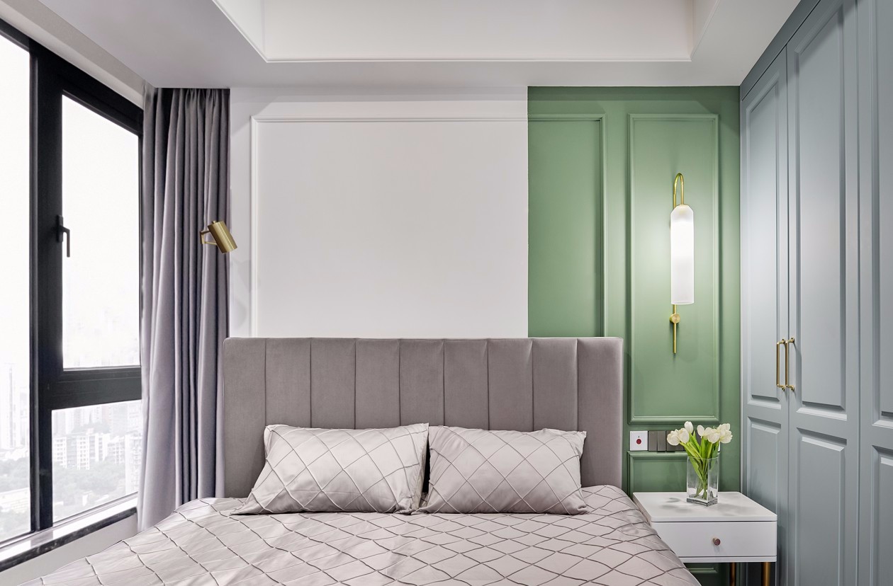 主臥及多功能房均采用低飽和度的色彩搭配,空間優雅時尚又不失明亮清爽。