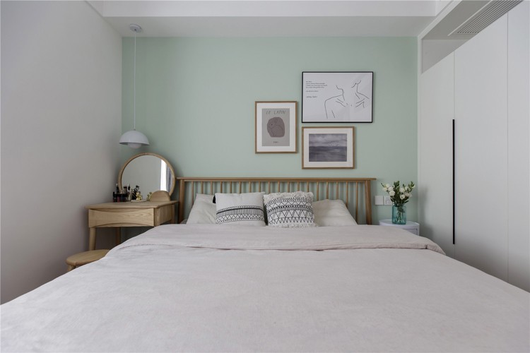臥室的色彩搭配采用了平衡之道,幾乎全由低飽和度的顏色組成,以白色為空間基調(diào),配合簡約的家具,溫潤的木地板,予人冷靜安謐的視覺感受。